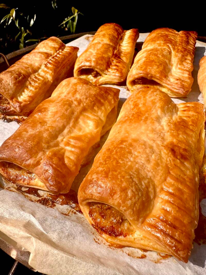 Hier vind je het recept voor de allerlekkerste saucijzenbroodjes, het recept onthuld zelfs het ouderwetse banketbakkersgeheim voor de meest smeuïge vulling van de broodjes. De meeste recepten die je vind voor saucijzenbroodjes gaan uit van een simpele gehakt vulling welke zich in de oven op hoge temperatuur laat bakken tot een massieve deeg hap met een taaie structuur. Dit probleem werd vroeger in de banketbakkerij opgelost door soezen beslag aan de gehakt vulling toe te voegen, het resultaat hiervan is verbazingwekkend lekker. Het maken van dit beslag lijkt veel werk maar het zal je straks zeker mee vallen. Wij hebben het recept in ieder geval alvast perfect aangepast op de gehakt vulling. Na het proberen van dit recept zal je zeker geen andere meer willen maken. Een leuke twist is eventueel om de saucijzen broodjes voor het bakken wat kleiner te snijden om ze zo te promoveren to een leuke borrel snack, ideaal voor bijvoorbeeld verjaardagen. Wij serveerden de saucijzen broodjes met een eigen sausje waarvan je het recept hier ook vindt. Uiteraard konden wij het niet laten om de saucijzenbroodjes af te bakken in de kamado maar in een oven kan dit natuurlijk net zo gemakkelijk. 10 Stuks of 30 st mini